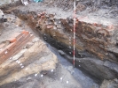 Nálezová situace v liniovém výkopu, který procházel současnou ulicí a městskou parcelou, se lišila v závislosti na tom, jednalo-li se o prostor ulice Růžová či plochu někdejší dvorní části. V části zasahující do Růžové ulice byl shledán sled uloženin a výkopy v podobě kůlových jam obsahující materiál z období středověku. Ve dvorní části domu č.p. 173 byl zaznamenán v hloubce přibližně 1,2 – 1,4 m pod současným povrchem zahloubený objekt. Z nálezové situace vyplývá, že nejprve vznikají nalezené kůlové jamky a posléze vzniká zahloubený objekt, po něm vznikají ještě další dva menší objekty. A po zániku těchto objektů se zde vytváří vrstva, která vše překrývá.