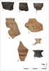 Tab. 1 – 7 nálezy keramiky, brousku, keramického koníka a hrací kostky