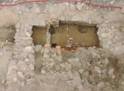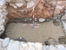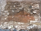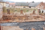 foto 6. – odkrytá část středověké místnosti se vstupním prostorem po vybrání destrukce mazanice, vstupní prostor porušuje novověké zdivo stáje