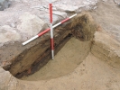 foto 4. – polovina pravidelného pravěkého objektu, jehož druhou polovinu poškodila zeď stáje a silnice