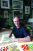Zbyněk Hraba odrývá desku postupně a tiskne jednotlivé barvy z jediného štočku.